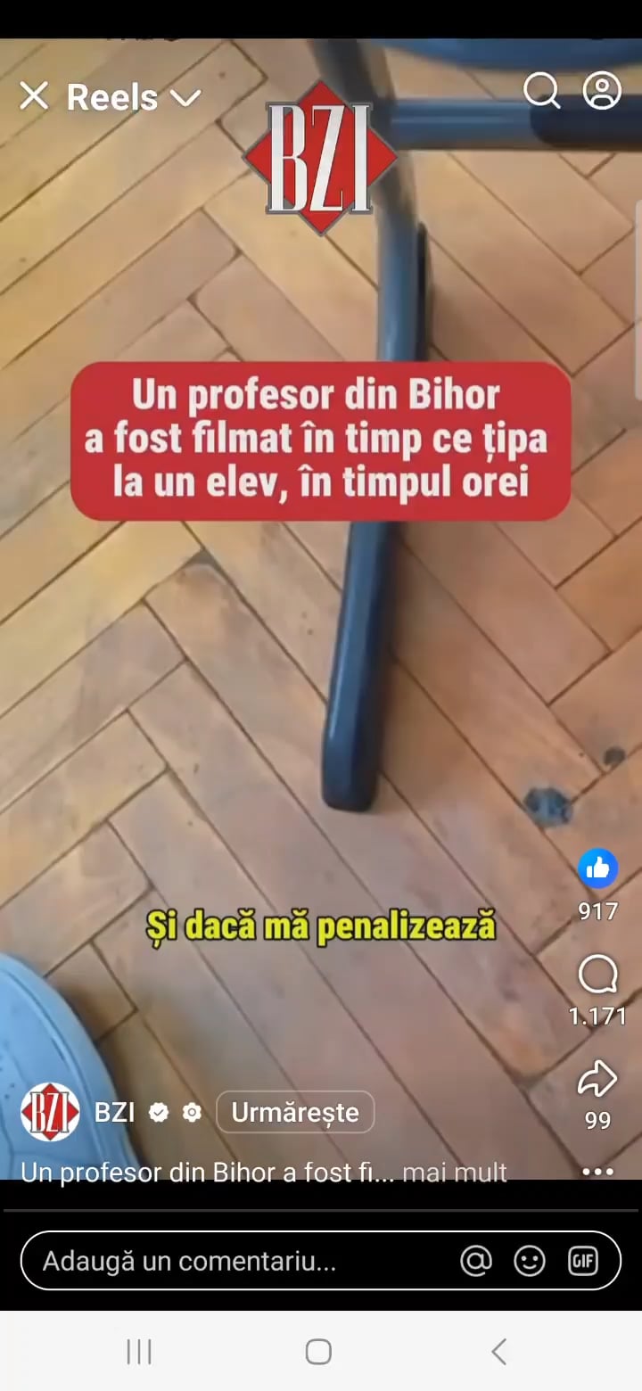 Ma mira cati iau parti in comentarii pe aici, de parca e alba sau neagra. Nu asa se comporta un profesor profesionist. Oricate frustrari ai nu ti le versi asa pe copii, oricat de indreptatit ai fi sa o faci. Reapectul nu il castigi facand pe tiranul nebun.