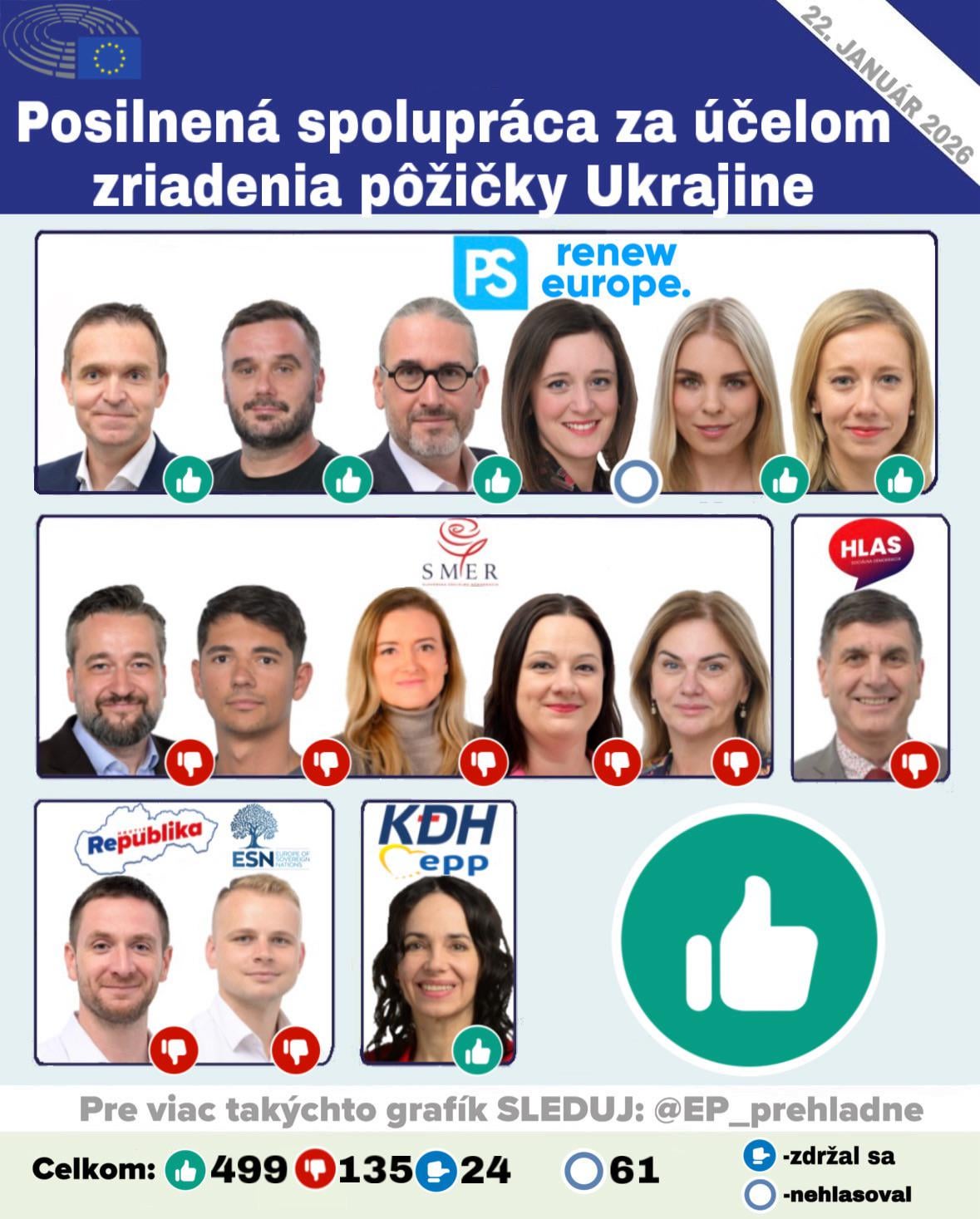 Il Parlamento europeo ha approvato oggi una decisione chiave che consente una cooperazione rafforzata tra i 24 Stati membri dell’UE nella creazione di uno strumento finanziario, ovvero prestiti per l’Ucraina per un importo fino a 90 miliardi di euro per il periodo 2026-2027. La Slovacchia non ha aderito a questa iniziativa.