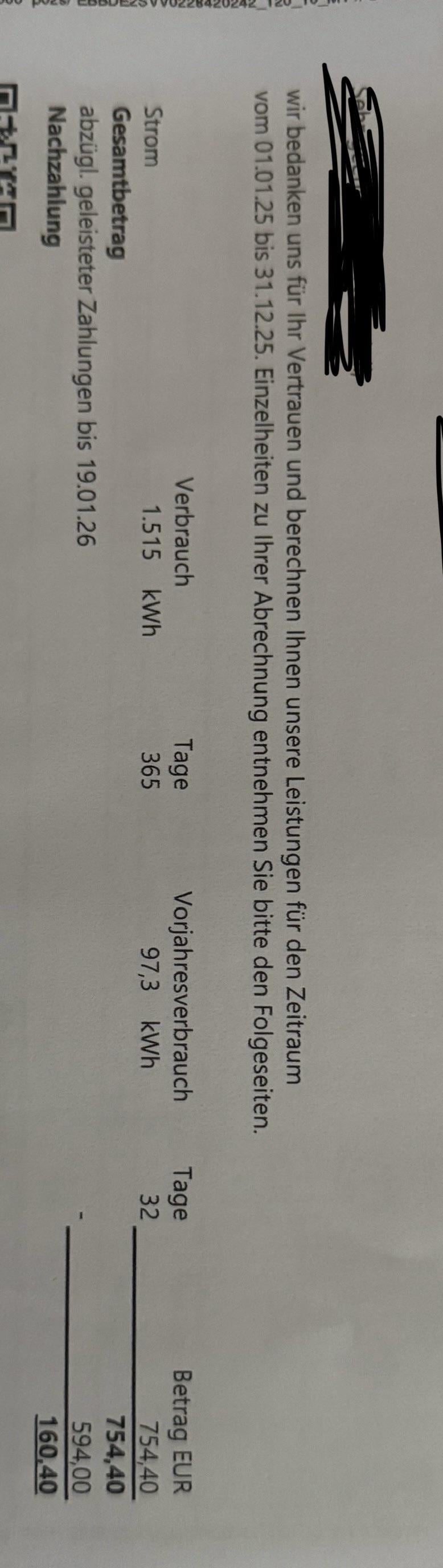 Ho appena ricevuto questo per posta e sono scioccato dal numero che vedo, per tutto questo tempo ho pensato che avrei ricevuto indietro i soldi invece devo 160€ Vivo da solo e raramente sono a casa inoltre non sono troppi soldi per 1500 kWh?