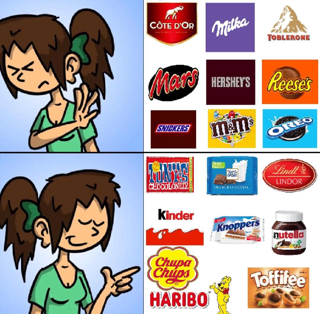 Купувам това, което ми се яде и ми е по-изгодно, и ама грам не ми пука за това, че една малка, но за сметка на това много креслива, групичка е решила, че Америка ей така от днес за утре ни е вече враг. Направо е смешно с шоколад да протестираш. Като си толкова ербап, какво търсиш още в редит?
