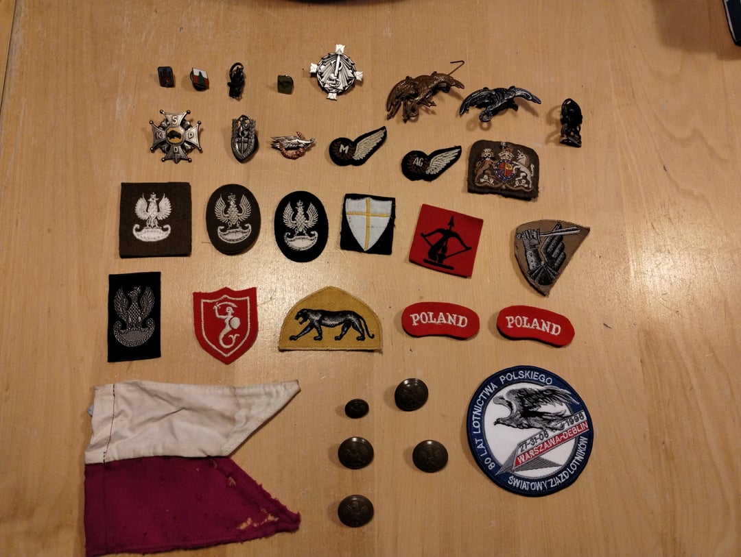 Reszty nie będę oceniał, bo jest to praktycznie niemożliwe bez ich personalnej znajomości. Większość z tego to PRL i wczesne lata dziewięćdziesiąte, kilka z tych rzeczy może, ale nie musi, pochodzić z PSZ na zachodzie. Repliki tego typu były dosyć powszechne po upadku komunizmu. Sporo odznaczeń i naszywek lotniczych, zarówno cywilnych jak i wojskowych.