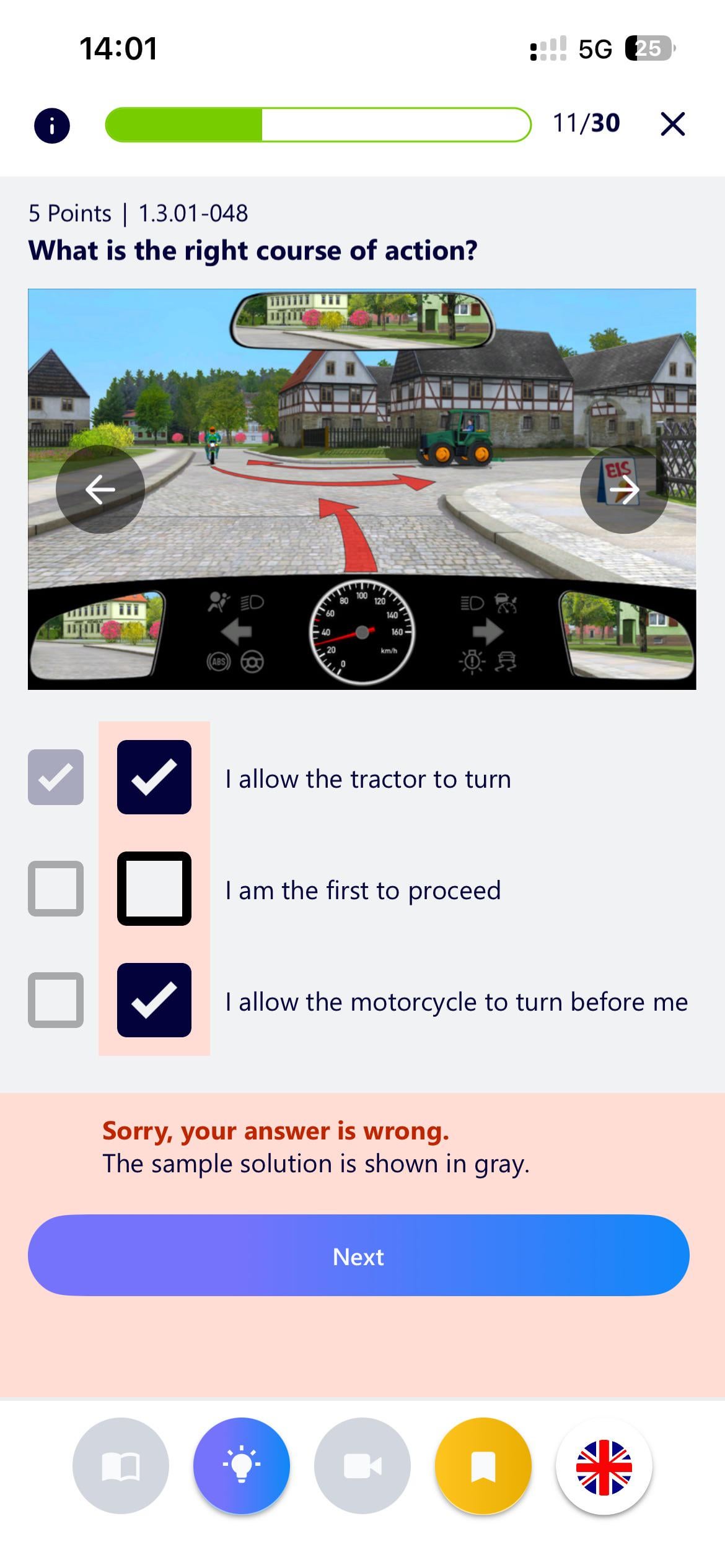 Ooo these are notorious ones. Tractor is to your right, so “I allow tractor to turn first”. Mobike is to tractor’s right, so “Tractor allows Mobike to go first”, but not you 😅.. They have a couple of these tricky ones, you have to read every word carefully (literally)…