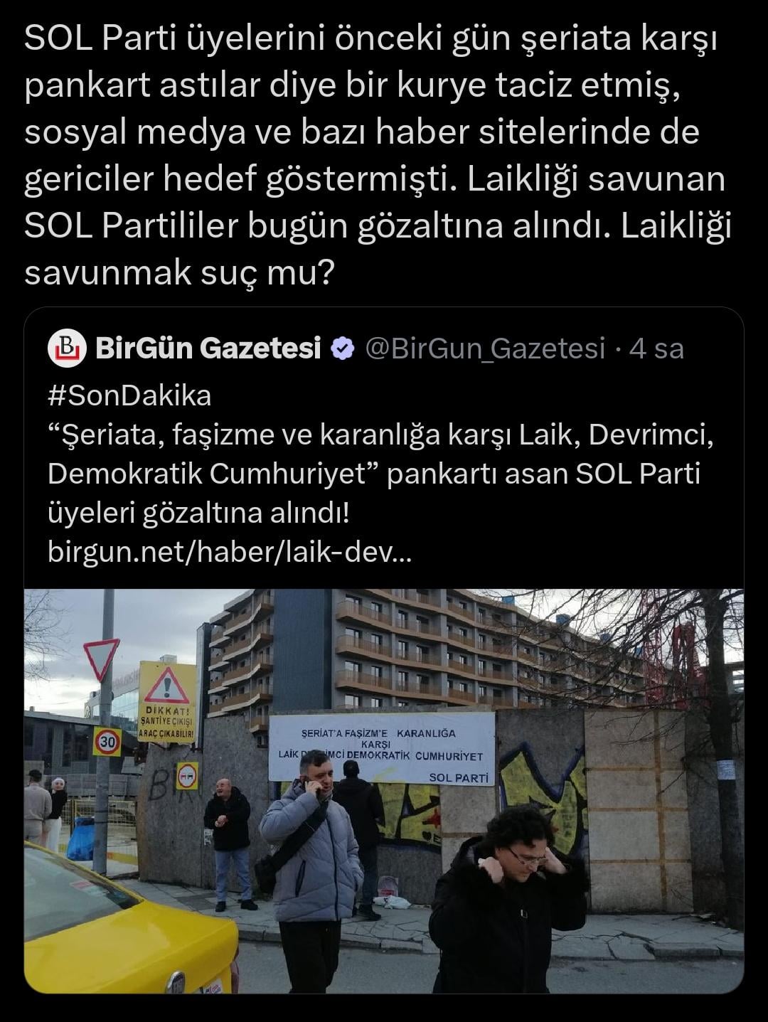 ConfidencePuzzled686 on 29/01/2026 17:51 Devlet kendi anayasasını savunan insanları hapse atıyor artık.