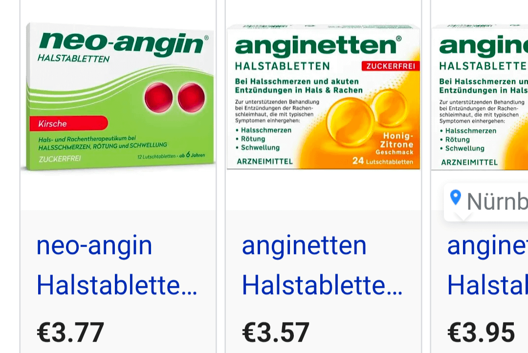 Qualcuno conosce dei bonbon per il mal di gola più economici dei neo-angin ma altrettanto efficaci dei neo-angin? Quel Tantum Verde zitronen giallo non mi è d’aiuto. O qualche modo per acquistare neo-angin a un prezzo inferiore rispetto ad Apotheke? O quale è efficace per il tuo mal di gola?