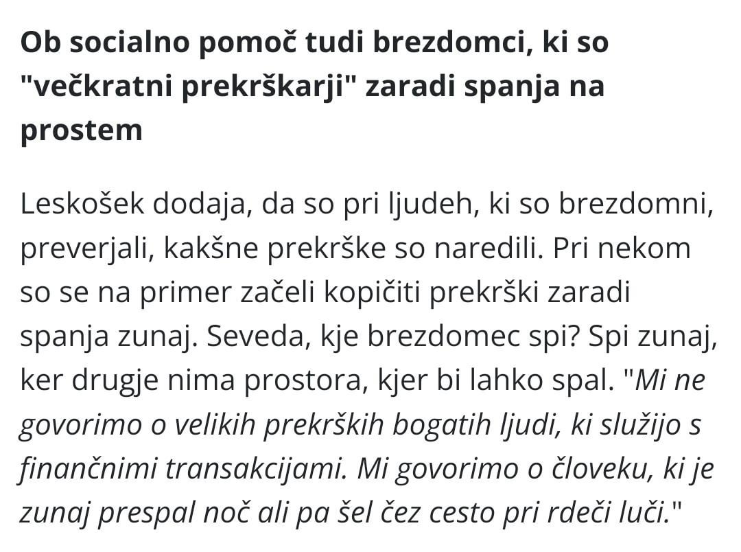 Ampak res, kaj tem brezdomcem ni jasno? Naj si že kupijo hiše, ne pa da spijo zunaj in kršijo zakon. /s