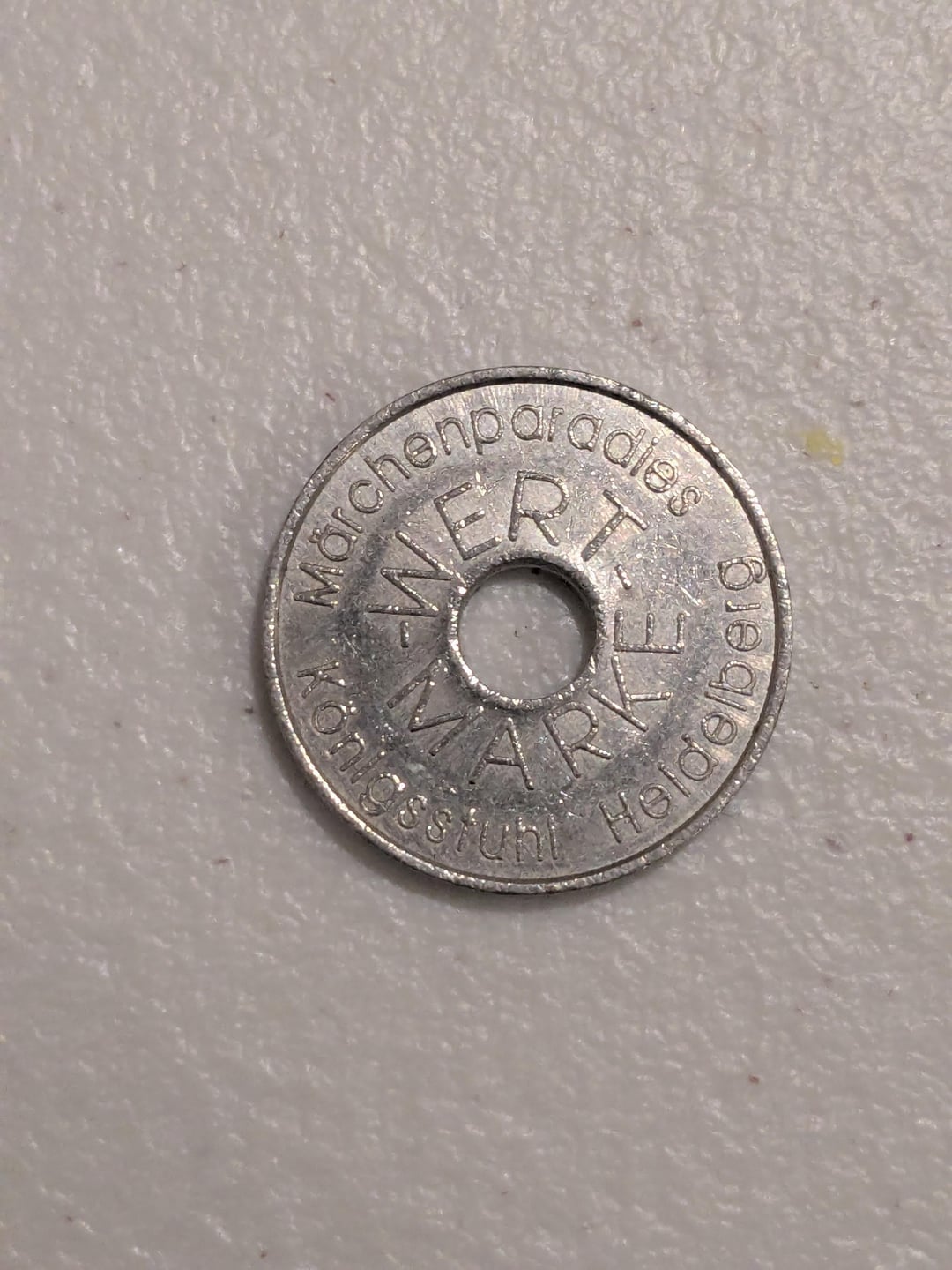 Independent-Home-845 on 30/01/2026 00:15 It’s a token from a small theme park for small children near Heidelberg. You pay 50 ct for one token, and you use the token for the rides in the park. If you don’t find anyone who has sentimental childhood memories for this place, you won’t get anything for it. Edit: Here’s a link to the park: [https://maerchen-paradies.de/](https://maerchen-paradies.de/)