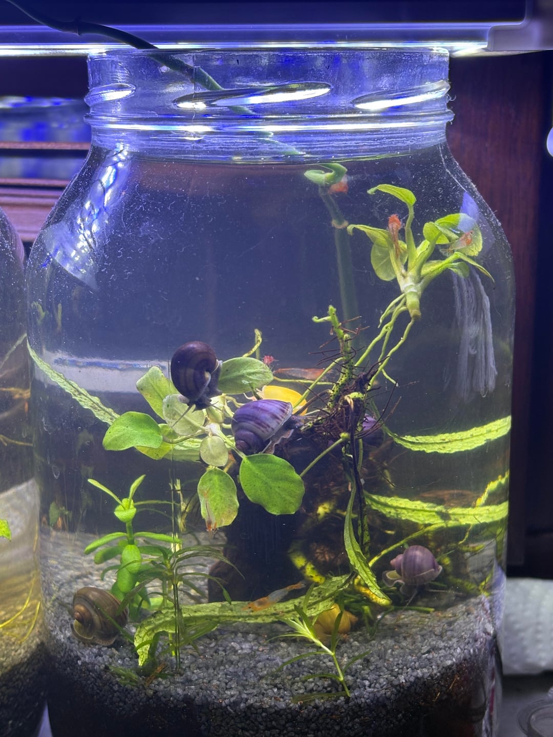 Od e bateto isto taka zemav 10 apple snails koi ražežičiv vo 3te tegli.