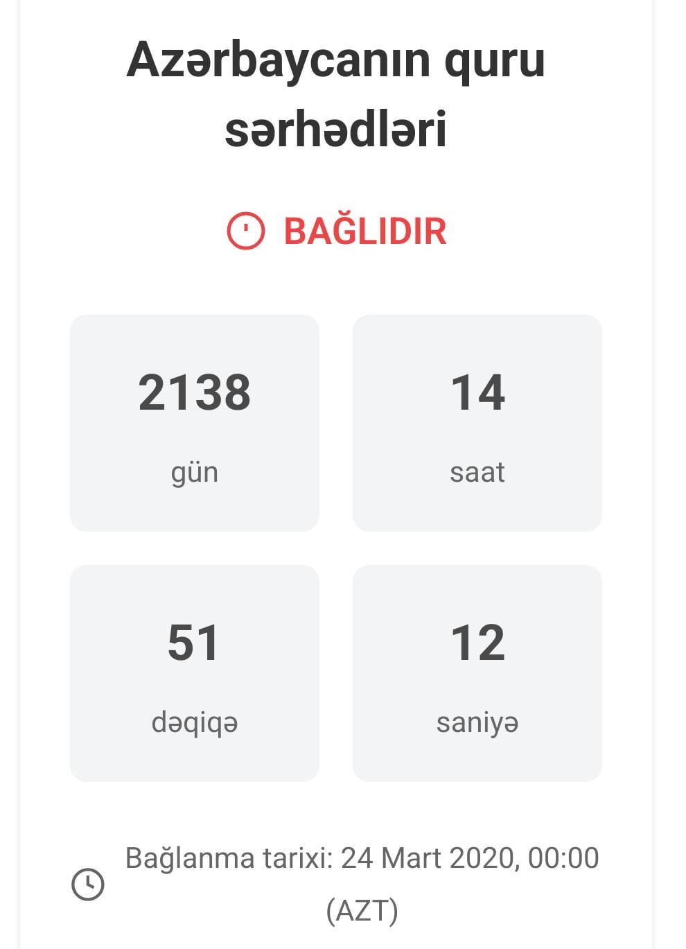 I confini terrestri dell’Azerbaigian sono rimasti chiusi per un periodo più lungo della prima guerra mondiale. https://i.redd.it/31155e35wggg1.jpeg di kurdechanian