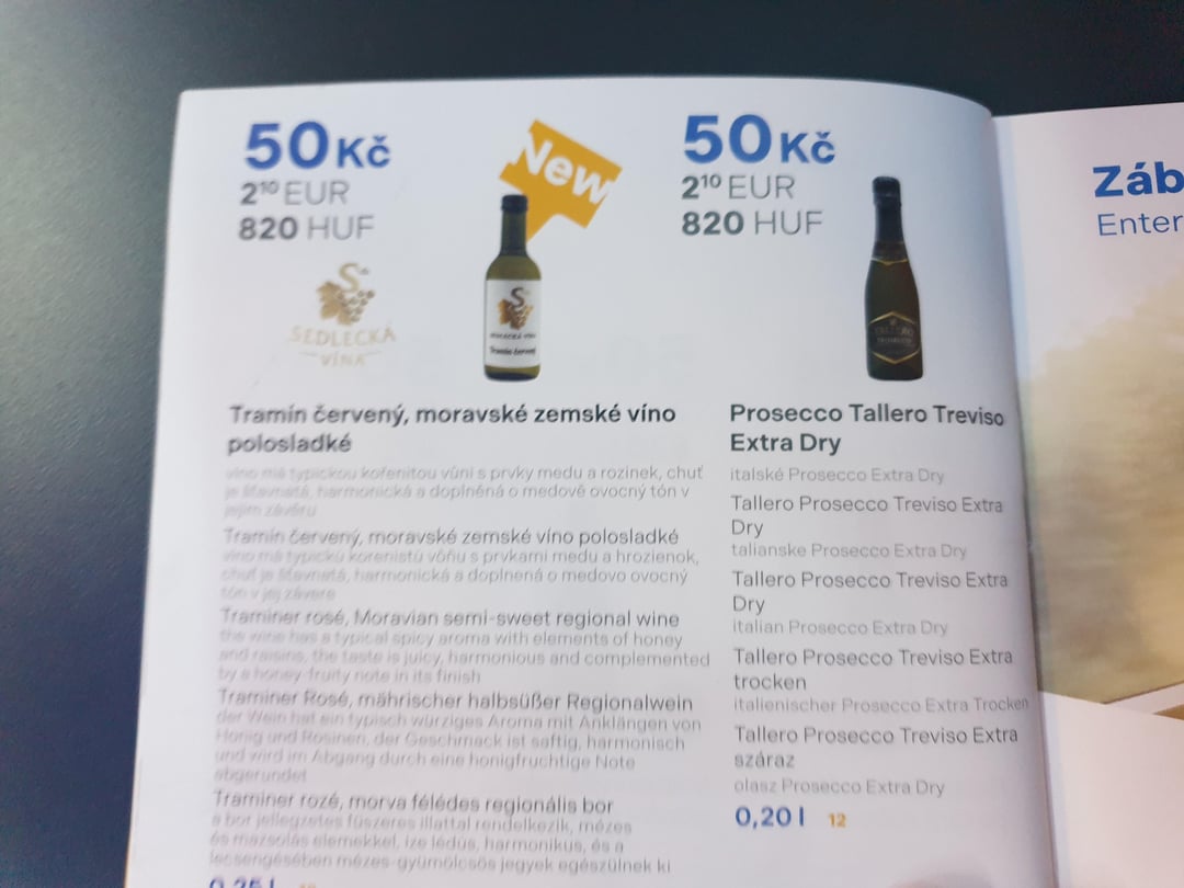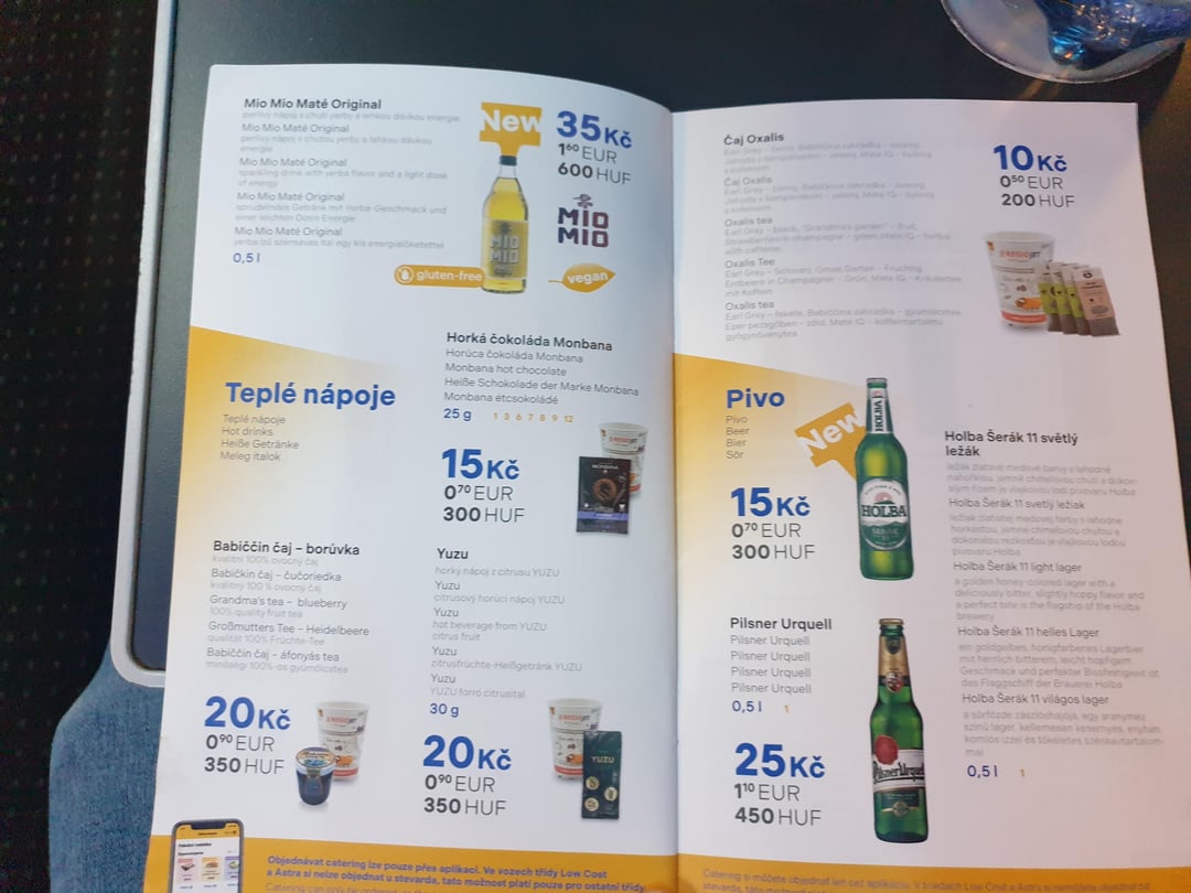 Inoltre, una bottiglia di acqua minerale e un bicchiere di caffè sono compresi nel prezzo (Vienna-Praga-Vienna 59 euro per 2 persone, sarebbero stati 79 euro, ma in riferimento a San Valentino è stato rinunciato il prezzo del biglietto di andata e ritorno per uno di noi, circa 20 euro).