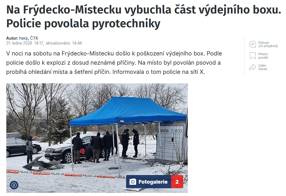 Adesso mi dirò ogni volta che prendo un pacco dalla scatola "e se esplodesse adesso?" Collegamento all’articolo: https://www.idnes.cz/ostrava/zpravy/hnojnik-vybuch-exploze-vydejni-box-zasilkovna-policie.A260131_135341_ostrava-zpravy_herp