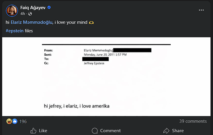 Circolano voci sul fatto che il nome di Elariz Məmmədoğlu compaia negli archivi di Epstein https://i.redd.it/f6alvec7ztgg1.png di INeatFreak