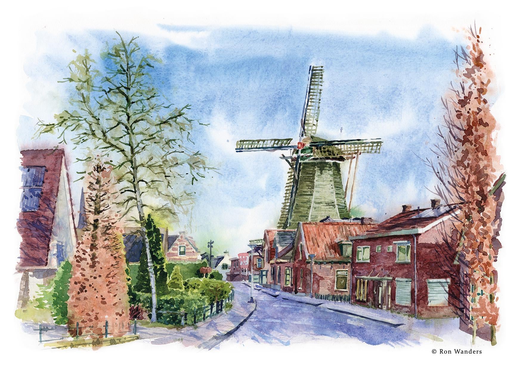Een tijdje terug maakte ik deze aquarel in het mooie Wijhe. Het was laat in december en links en rechts werd al vuurwerk afgestoken. Maar het zonnetje scheen, ondanks dat het koud was. Ik heb geprobeerd die sfeer in dit schilderij te laten zien. Thuis heb ik er nog even aan doorgewerkt toen mijn vingers begonnen te bevriezen.