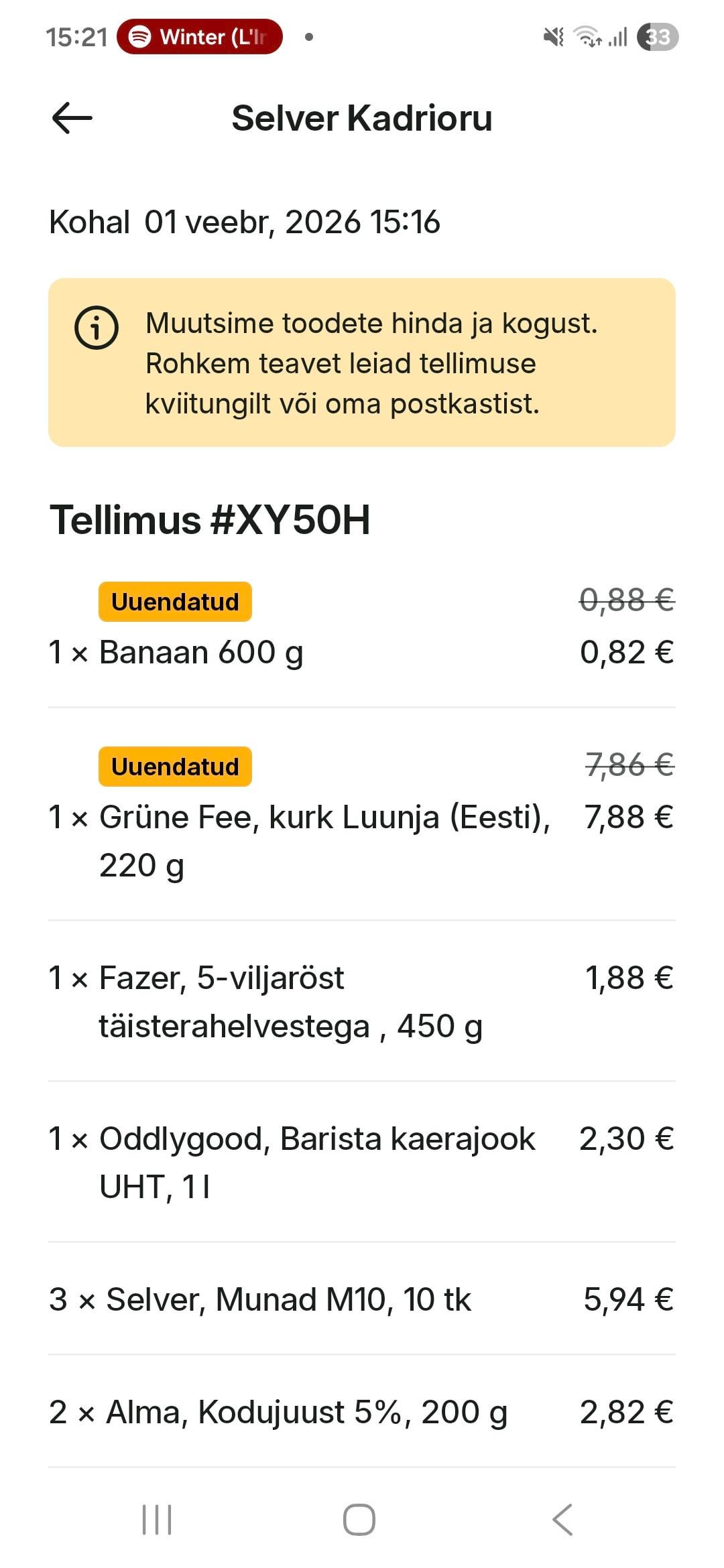 vähemalt tegid allahindlust 2 senti üles 35.82€ kilohinnaga kurgile.