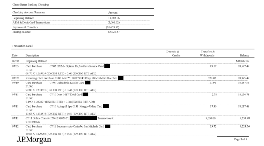 Conto bancario – Non c’è nemmeno un nome, ma ci sono acquisti da H%M nel giugno 2012.