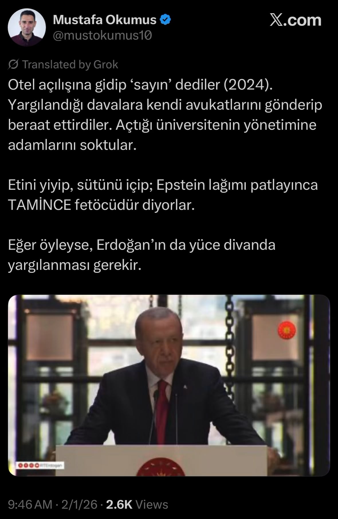 düzeltme: videoda Mücahit Ören’le ilgili bir yorum olmadığını fark ettim, Fettah Tamince’den bahsediyor. İhlas Holding ve Mücahit Ören de Epstein listesinde, hatta kendisine yazışmalarda “naughty ahmet” diye isim takmışlar. bu adam TGRT haber’in sahibi.