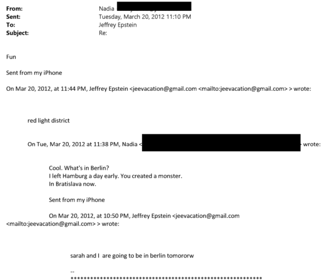 Modello di Bratislava vuole imparare cose sul sesso, Epstein consiglia libri sul tantra.