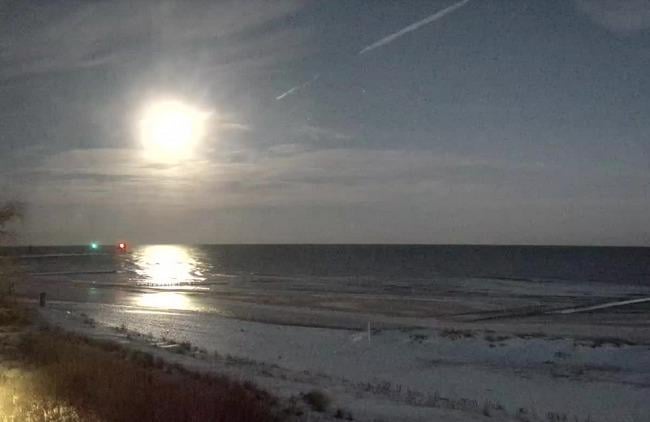Zdjęcie a rzeczywistość to dwie różne rzeczy. Wczoraj wieczorem próbowałem zrobić zdjęcie księżyca telefonem i wyszło coś takiego jak poniżej. W rzeczywistości to był normalny księżyc a na zdjęciu wygląda jak słońce. W Twoim przypadku zapewne jest podobnie. Fakt, że mimo, że księżyc świeci jak zwykle, to jest jaśniej, bo jest śnieg.