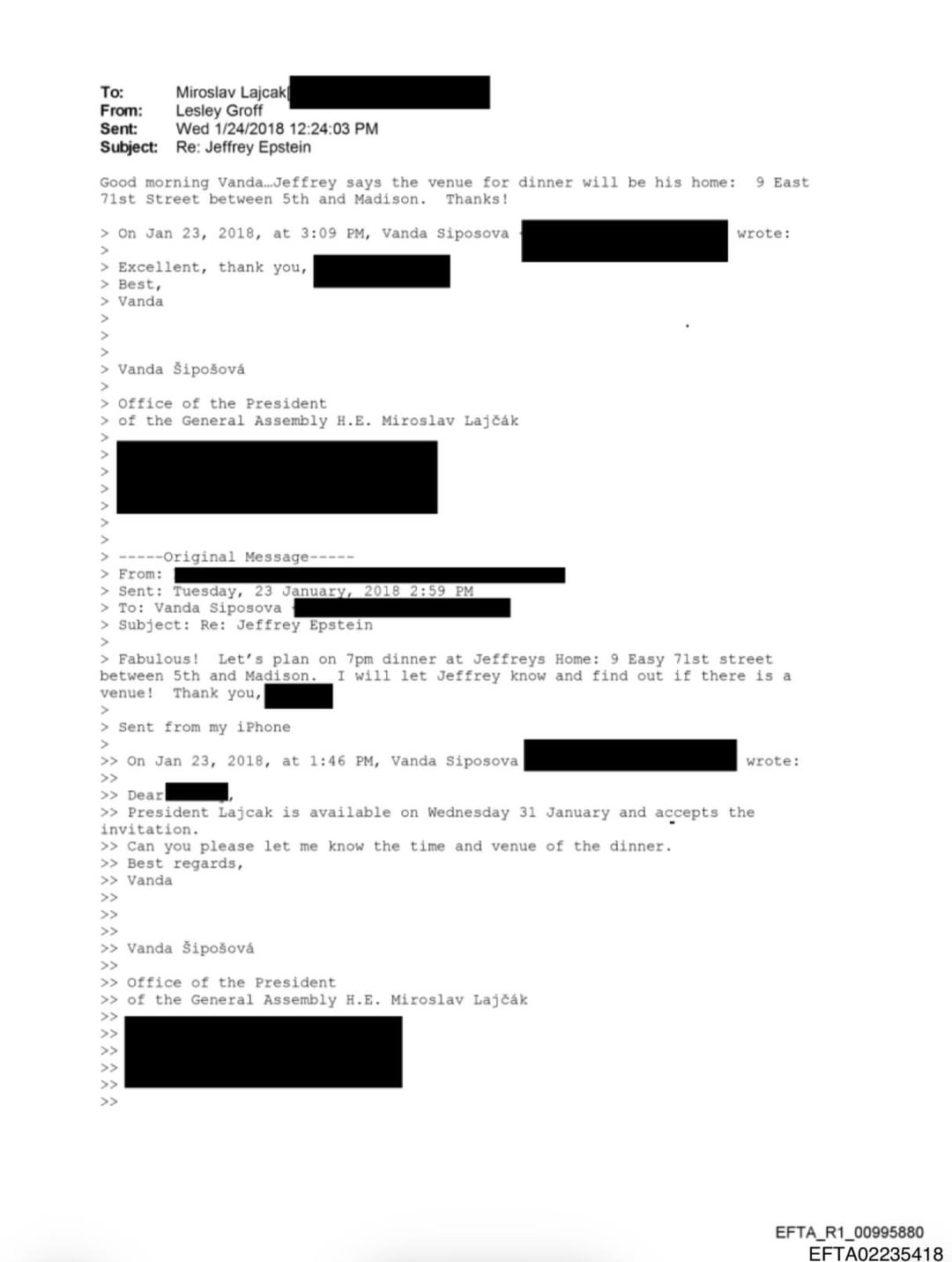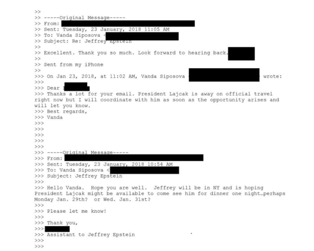 Miroslav Lajcak ha incontrato Epstein nella sua casa di New York il 31 gennaio 2018, quando era presidente dell’Assemblea generale delle Nazioni Unite