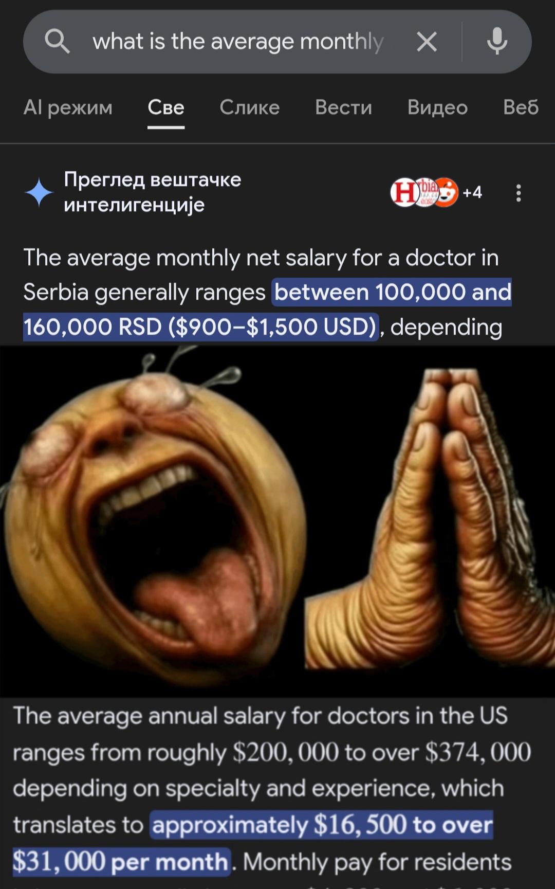 Da, poražavajuće je kad se porede plate RS i SAD. Ali lekari tu imaju najmanje opravdano da cepidlače, a najviše od svih uživaju plodove ovog mafijaškog sistema.