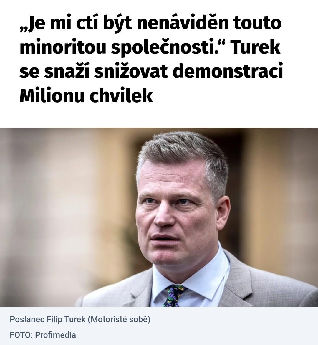 Zajímavé, že to říká člověk, co právě minoritu společnosti reprezentuje 😅(6%?) Bylo to centrum Prahy v zimě. Chtěl bych vidět jeho podpůrce se za něj postavit. Ale počkat, oni se k němu nehlásí jinde, než na sítích (kde jsou strašní lobo-siláci-tomici)…. Jak bylo v jejich kampani. “Nikomu nemusite rikat, ze jste nas volili” (nebo tak nějak – ano, určitě bez diakritiky)… asi to stejně psali, když byli ožralí. Holt motoristi (v) sobě!