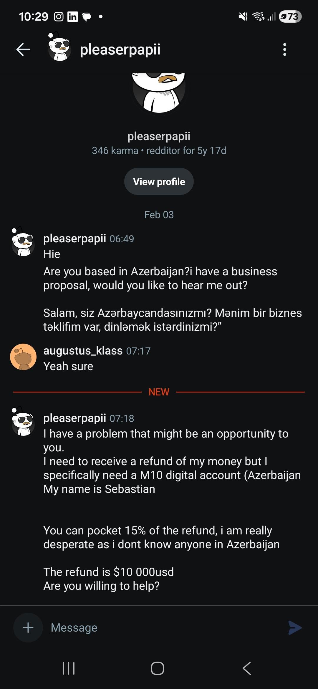Qualcuno ha avuto esperienze simili? Due persone mi hanno contattato nello stesso giorno https://www.reddit.com/gallery/1qunjpr di augustus_klass