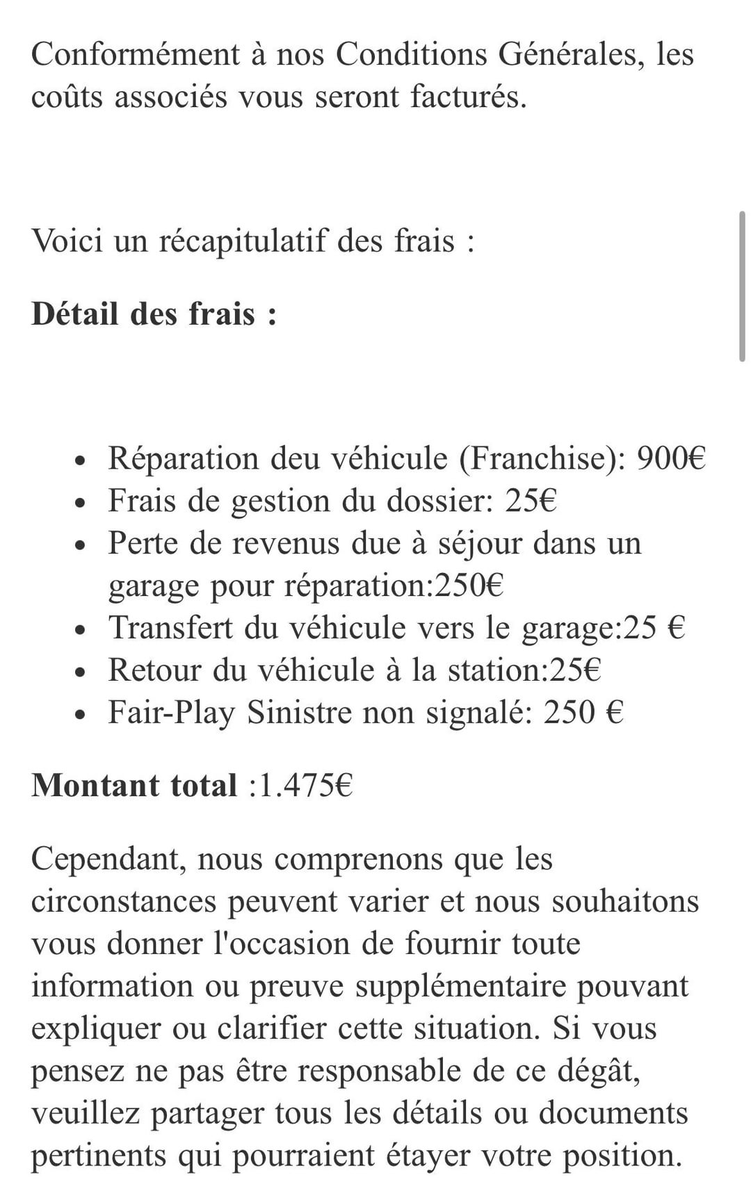 Successivamente ho ricevuto una loro email in cui si diceva che la persona dopo di me aveva segnalato un danno, quindi la colpa è mia.