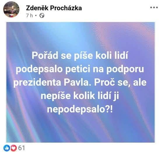 TommyVe on 03/02/2026 20:36 Podle aktuálních čísel: Petice na podporu Chada Pavla: 720 042 Populace planety: 8,273,779,300 Circa 8 bilionů 273 milionů 59 tisíc petici nepodepsalo, jsou v solidní převaze.