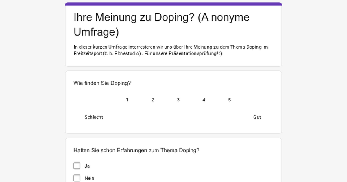 Sondaggio sul doping negli sport ricreativi in Germania, Se vuoi puoi passare attraverso le domande ✌️ https://docs.google.com/forms/d/e/1FAIpQLScwzoLfGktJSuX6tmaBsIGAB1smsr7TRzhwDbSyM232n4Nl4Q/viewform?usp=publish-editor https://docs.google.com/forms/d/e/1FAIpQLScwzoLfGktJSuX6tmaBsIGAB1smsr7TRzhwDbSyM232n4Nl4Q/viewform?usp=publish-editor di fatkid_23