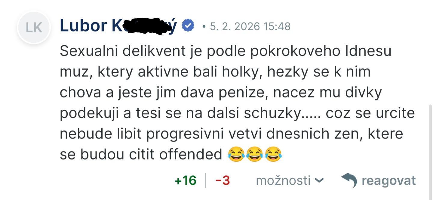 Co čekat? Tenhle člověk co napsal takový komentář v podstatě ani nechápe celou šíři toho co Epstein dělal a co se kolem něj vlastně dělo. Ten jen přečetl nadpis a možná tak perex a pak šel komentovat. Popravdě, kdyby neměli admini iDnesu hlavu v zadku, tak tohohle idiota smažou. Taky možná jde o to, že je to iDnes, médium Babiše, lidové a dokonale přizpůsobené k tomu aby rozptylovalo pozornost od národních, i světových událostí.
