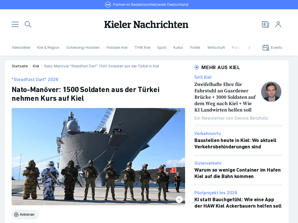 I preparativi sono già iniziati alla base navale di Kiel. La NATO è iniziata all’inizio di gennaio e lo stato dello Schleswig-Holstein è servito da epicentro. "dardo costante" incluso questo porto nell’ambito dell’esercizio. A questo scopo, domenica, una flotta di sei navi ha lasciato il porto della rotta spagnola ed è salpata per Kiel.