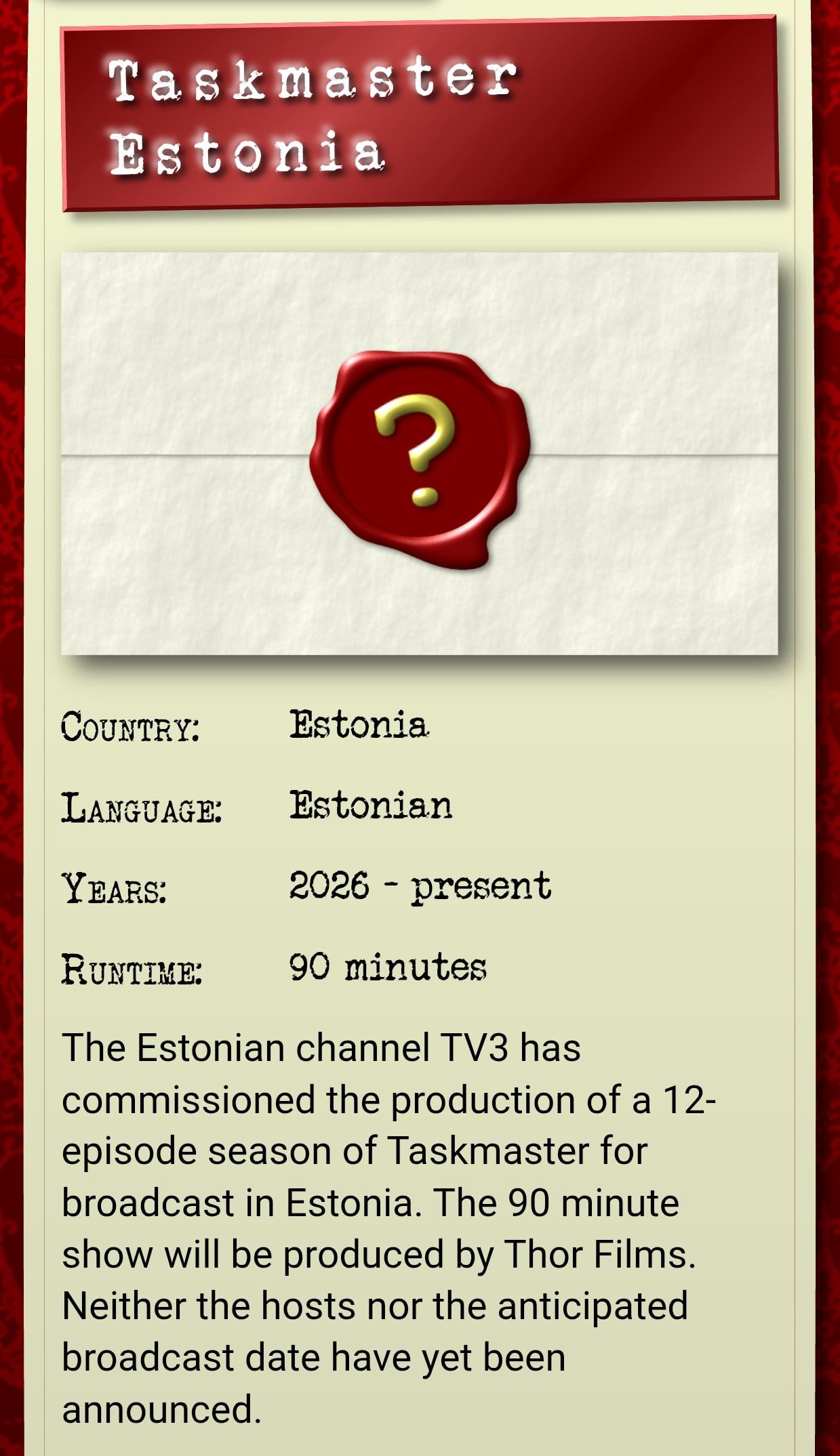 Endale on taskmaster meeldinud. Loodan, et valivad õiged inimesed saatesse ja tuleb äge. Eks näis.
