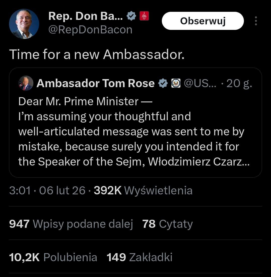 MartinGorePosting on 06/02/2026 13:53 He’s a dumbass republican, but at least marginally interested in maintaining good relations with Poland and Europe as a whole.