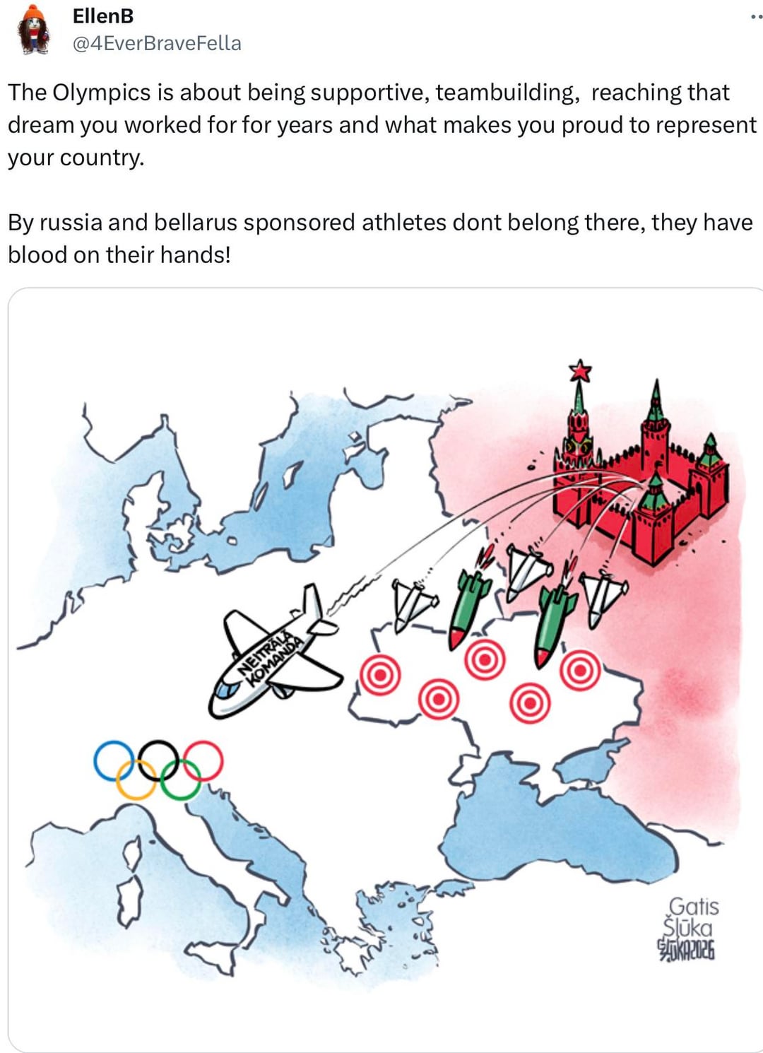 Charming_Piano_4391 on 07/02/2026 09:17 This is so true. I hate seeing Russian athletes competing and representing their country and being allowed to without displaying the flag is pathetic