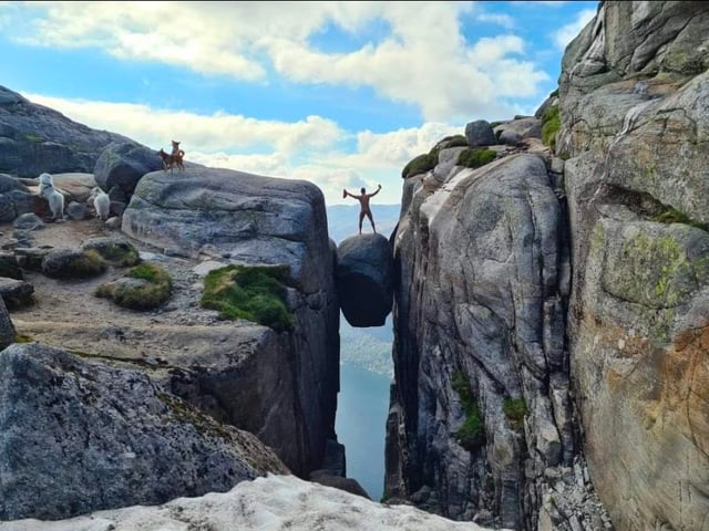 Kjeragbolten, Norvegia 🇳🇴 Saresti sul masso con un dislivello di 1000 metri?🫣 https://www.reddit.com/gallery/1qyh5tz di Eskimomadsen