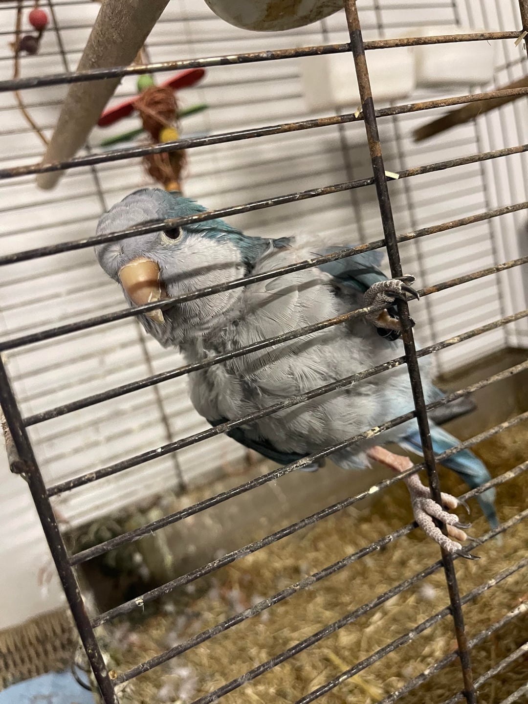 Il mio ragazzo si è trasferito lì nel 2025 e dice che da allora è sempre stato così, quindi sospetto che il parrocchetto sia rimasto per lo più solo per molto tempo. Personalmente non ho esperienza con gli uccelli, ma quello che ho letto è che i parrocchetti quaccheri sono animali molto sociali che necessitano di molta interazione e stimolazione mentale (?).