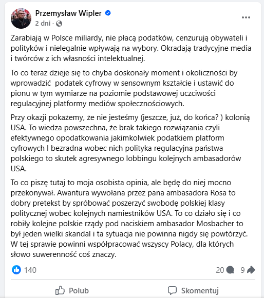 Przemysław Wipler [Konfederacja] parla con la voce di Together e vuole tassare le grandi multinazionali americane