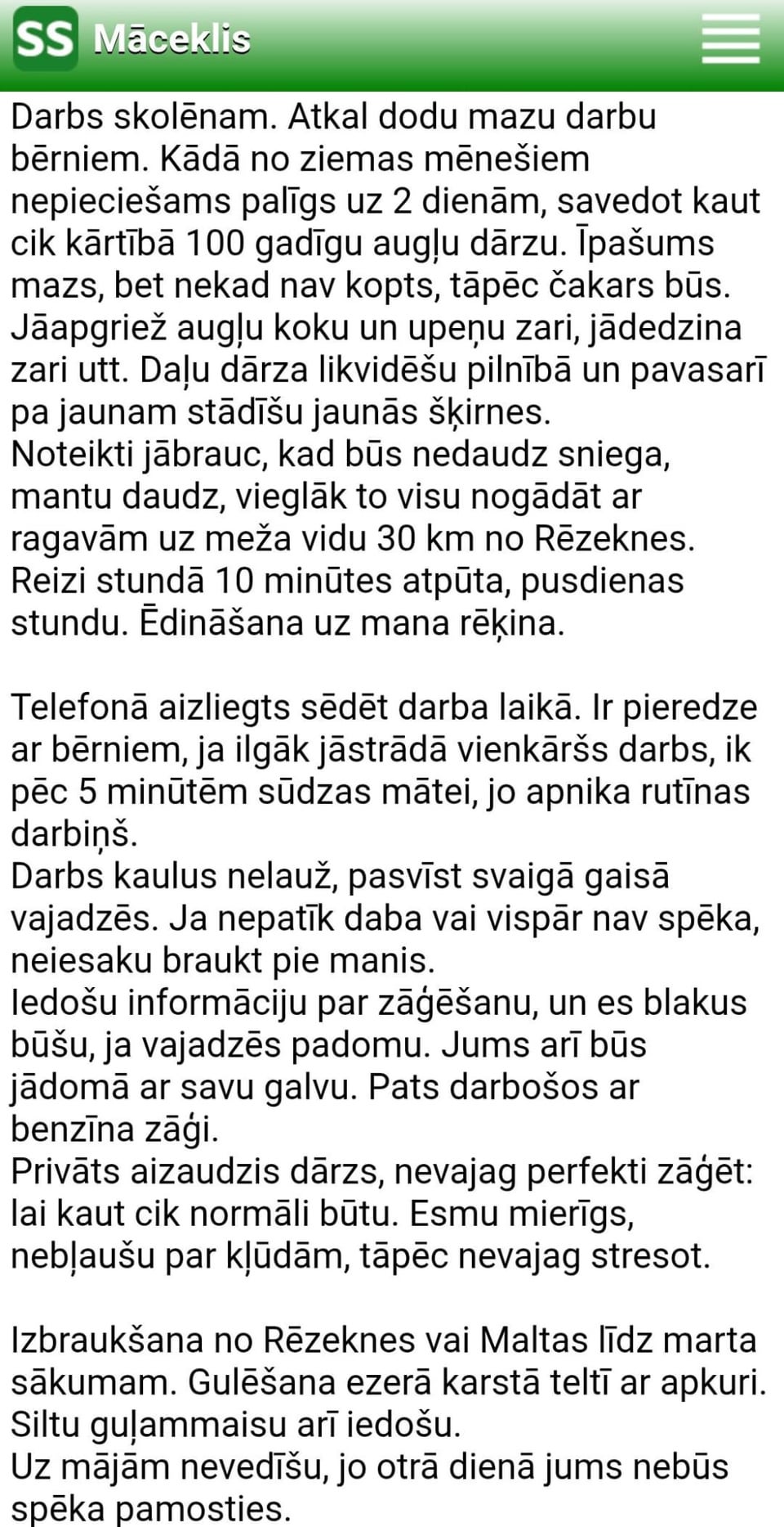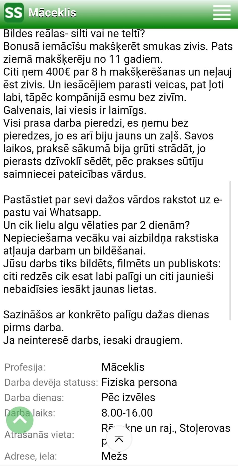 bet pēc tam paliek tikai dīvaināk tā gulēšana teltī, mistiskā 400€ vērtā makšķerēšana (tad uz darbu vai copi viņš aicina?), un beigās vēl tā foto un filmēšana wtf. izklausās ka viņš drīzāk grib bērnu nometni organizēt nevis darba rokas meklē