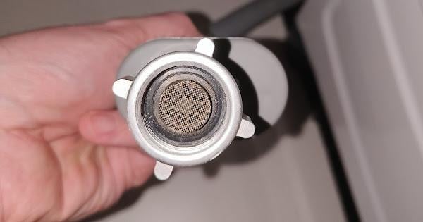 Zit er al een stuk in die kraan of lijkt dit maar zo? In ieder geval oppassen met zo’n plastic connectie, vaatwasser heeft iets gelijkaardig en al eens kapotgedraaid