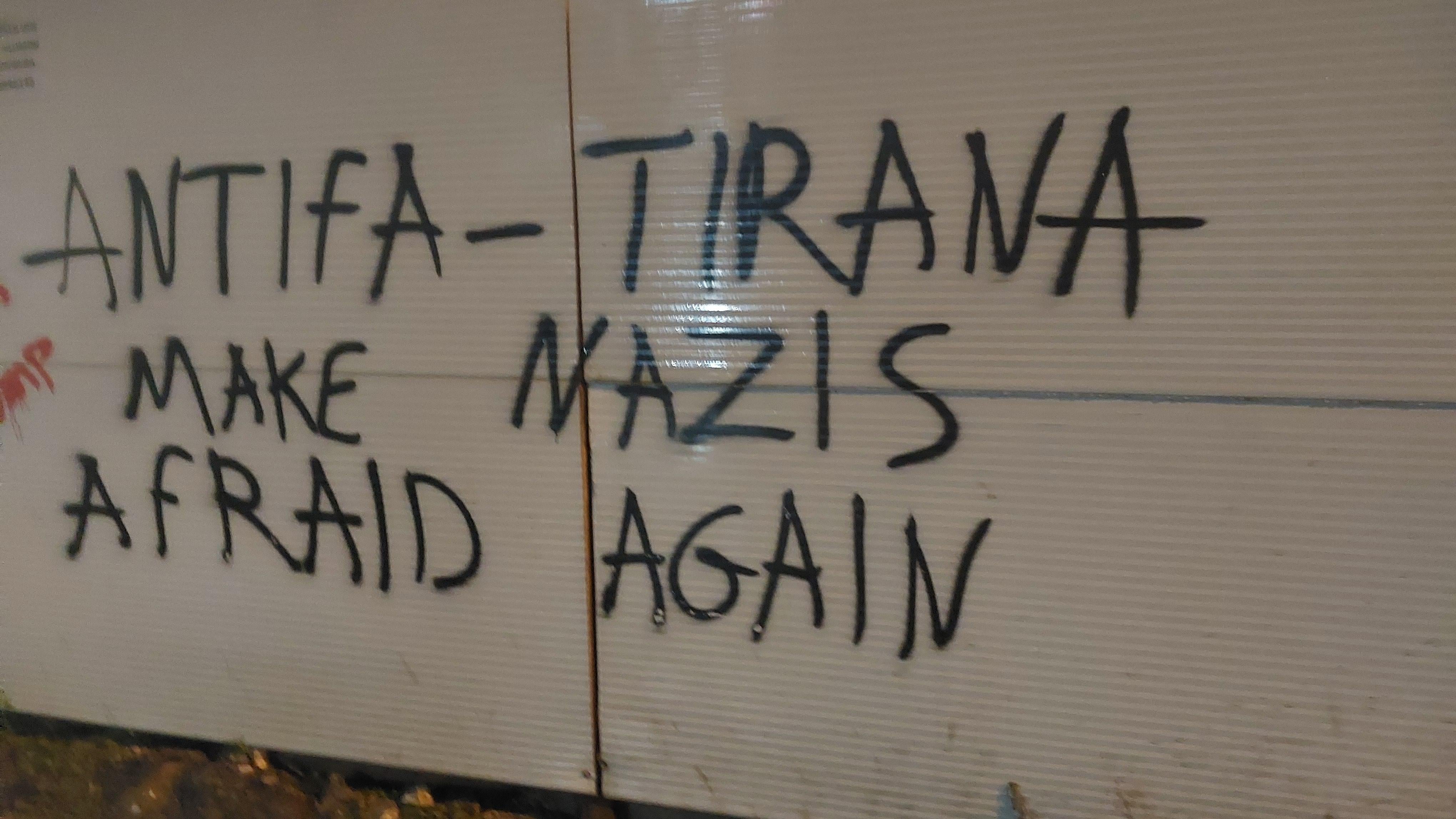 nuk jan te huajt qe i kan bere kto grafiti, gjithe fusha e Ali Demit eshe mbushur me kto sloganet antifashiste!