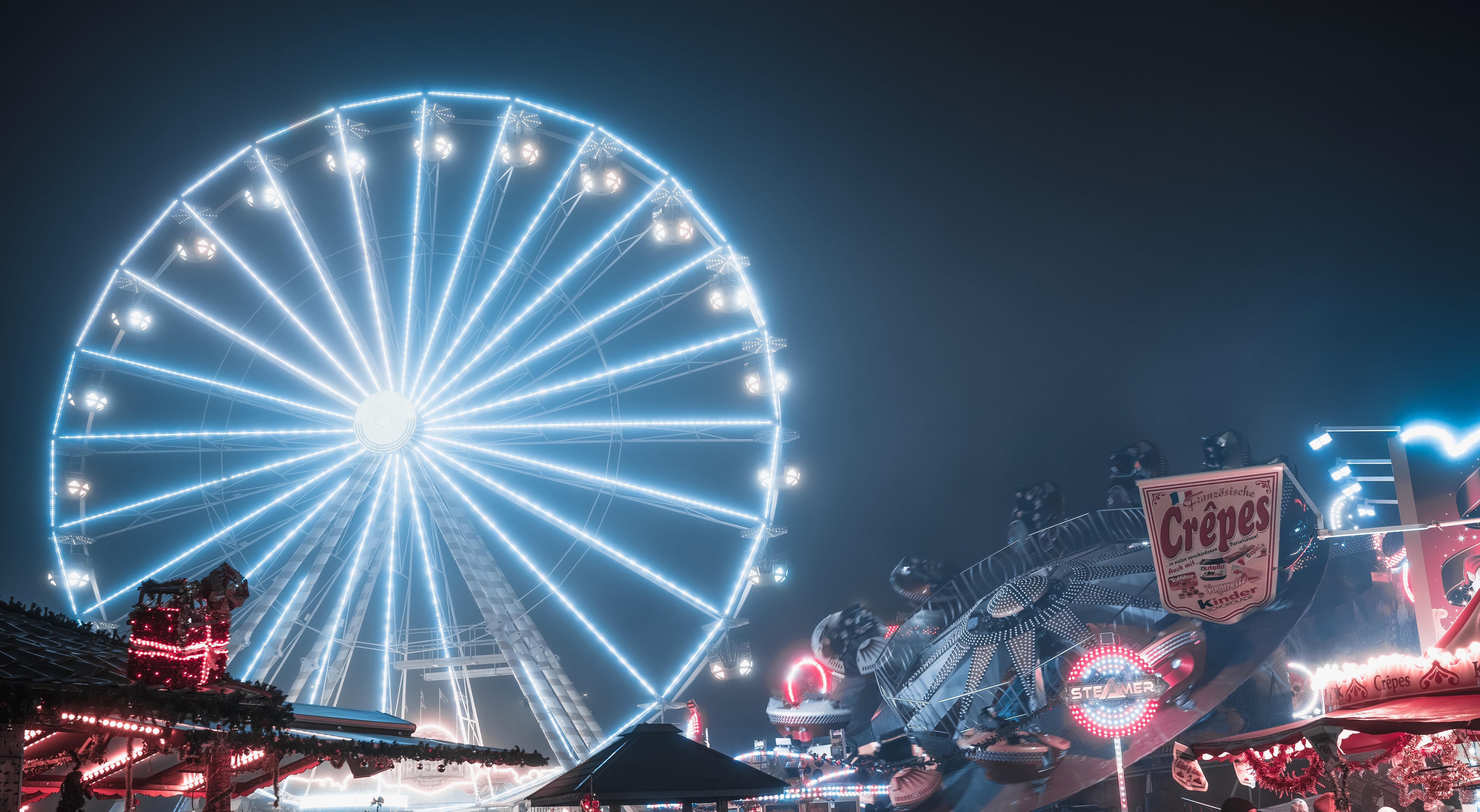 (Whole composition doesn’t make sense, way too high saturation on just the lights, flying sign on the right that is perfectly readable bit nothing else is, crates on the (japanese?) Roof on the left that are distorted, big ride in middle right is morphing into the background on the left side of it)