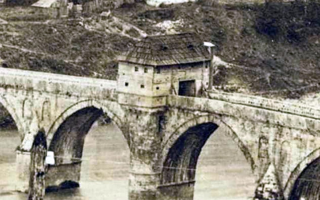 "Al centro di questo ponte sorgeva una torre di legno, di cui non si conosce l’epoca della sua creazione, e fu demolita nel 1886. La torre era un corpo di guardia con un passaggio sottostante, chiuso su entrambi i lati da robuste porte di quercia. Sulla torre c’erano diversi piccoli cannoni chiamati shibe. Sul ponte c’erano due versi in versi con gli anni incisi: il primo 971-/1571 e il secondo 985/1577." Maggiori informazioni sul ponte e sulle immagini al collegamento https://www.biserje.ba/rijetka-fotografija-visegradskog-mosta/