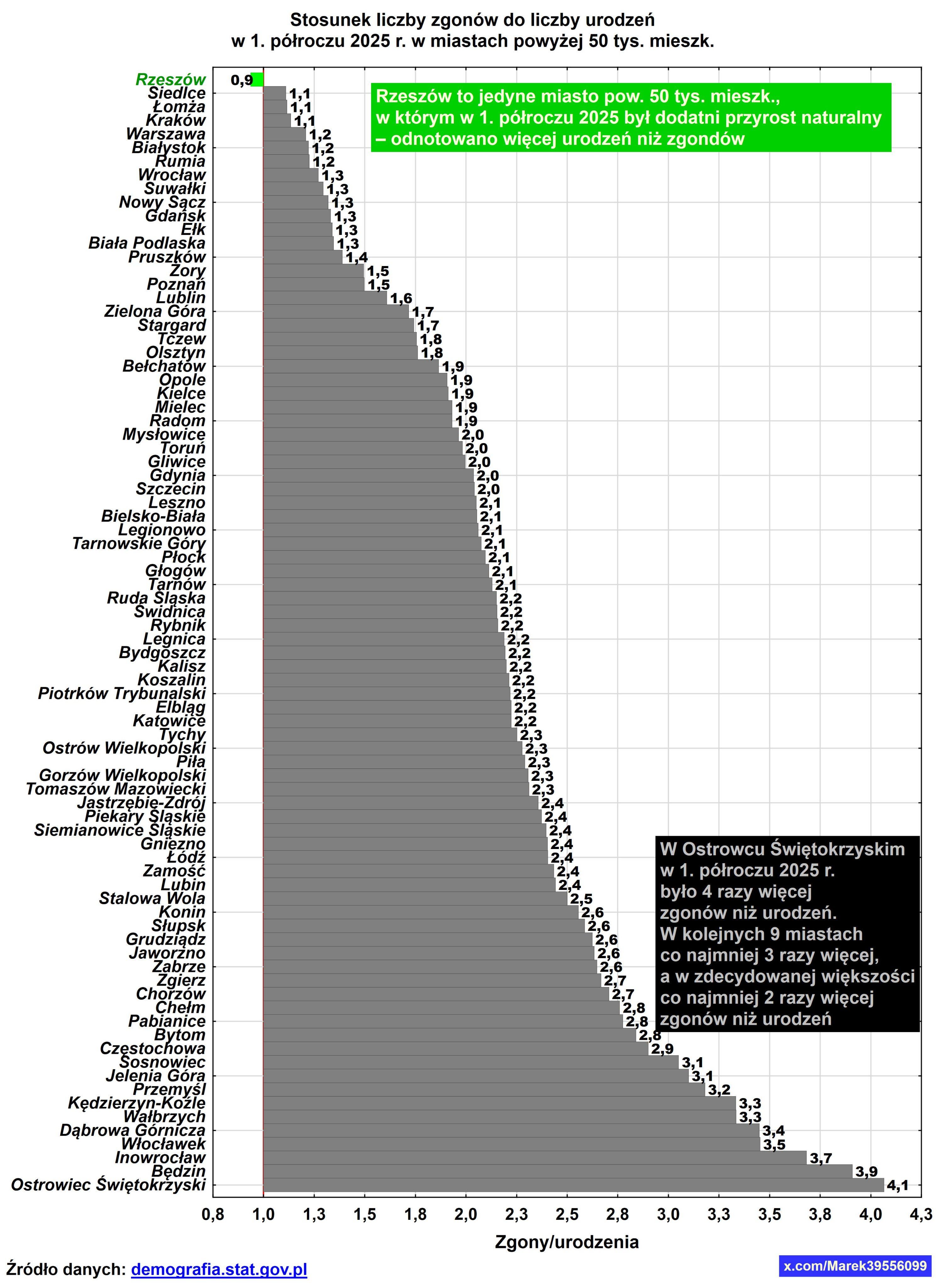 Rapporto tra il numero di decessi e il numero di nascite nelle città polacche – prima metà del 2025 https://i.redd.it/k2otzr9k9uig1.jpeg di 9Laser