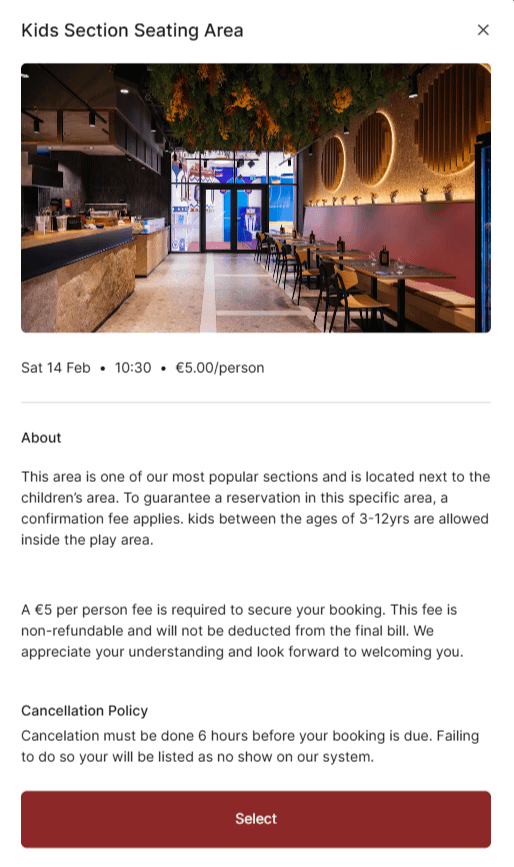 do they not want people booking this section? who pays 5 euros for a seat in a restaurant?