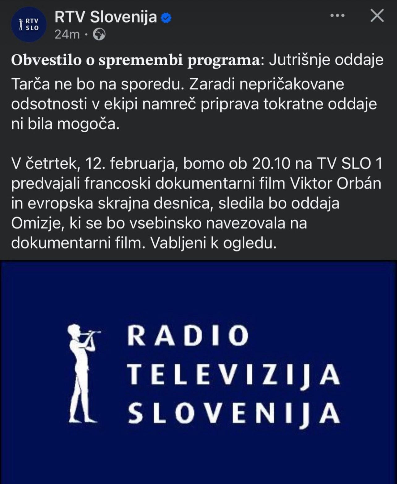 😁😁 namesto tega se bo predvajal francoski dokumentarni film Viktor Orban in skrajna desnica.