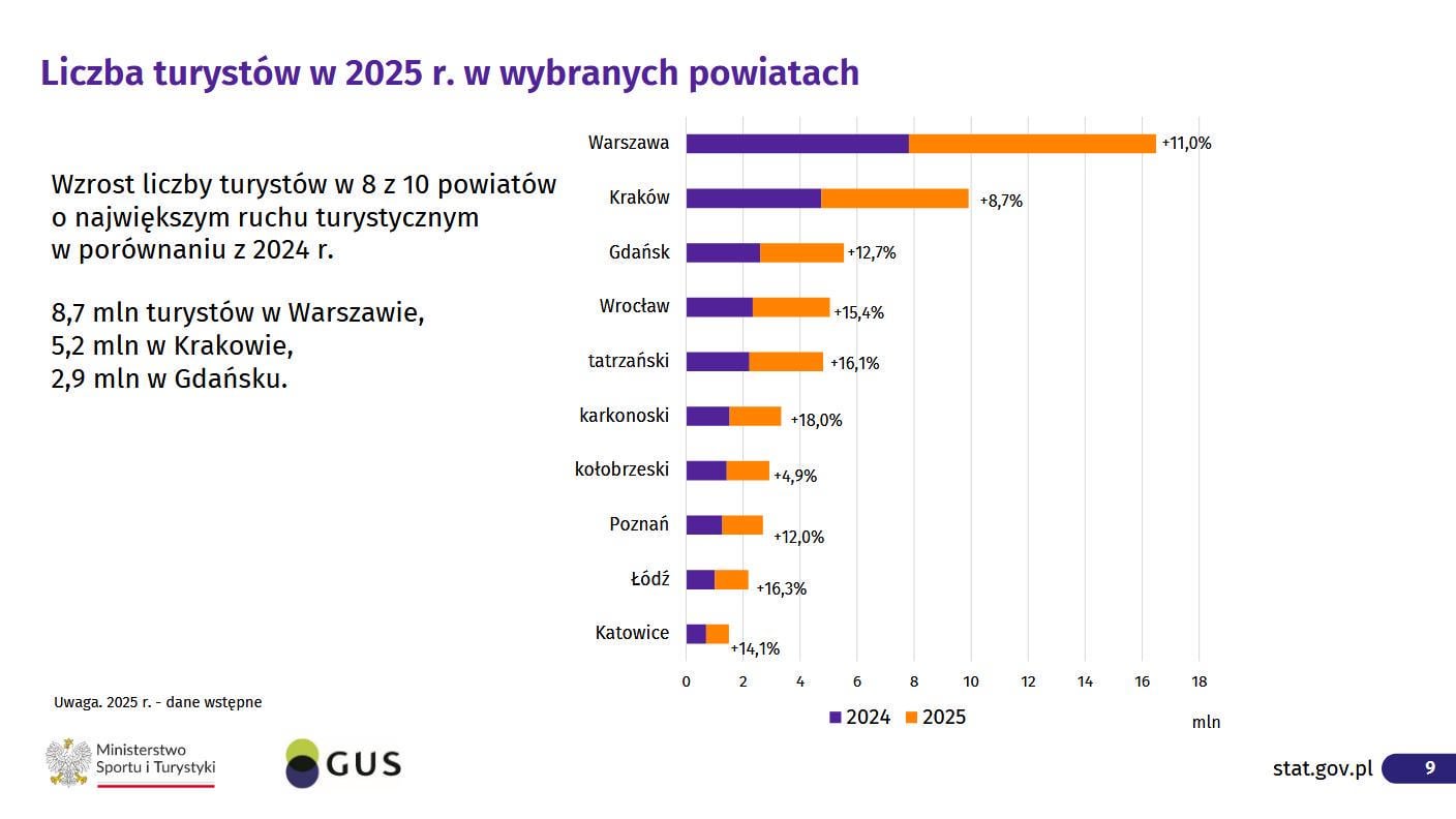 W Warszawie było w 2025 roku dwa razy więcej turystów.
