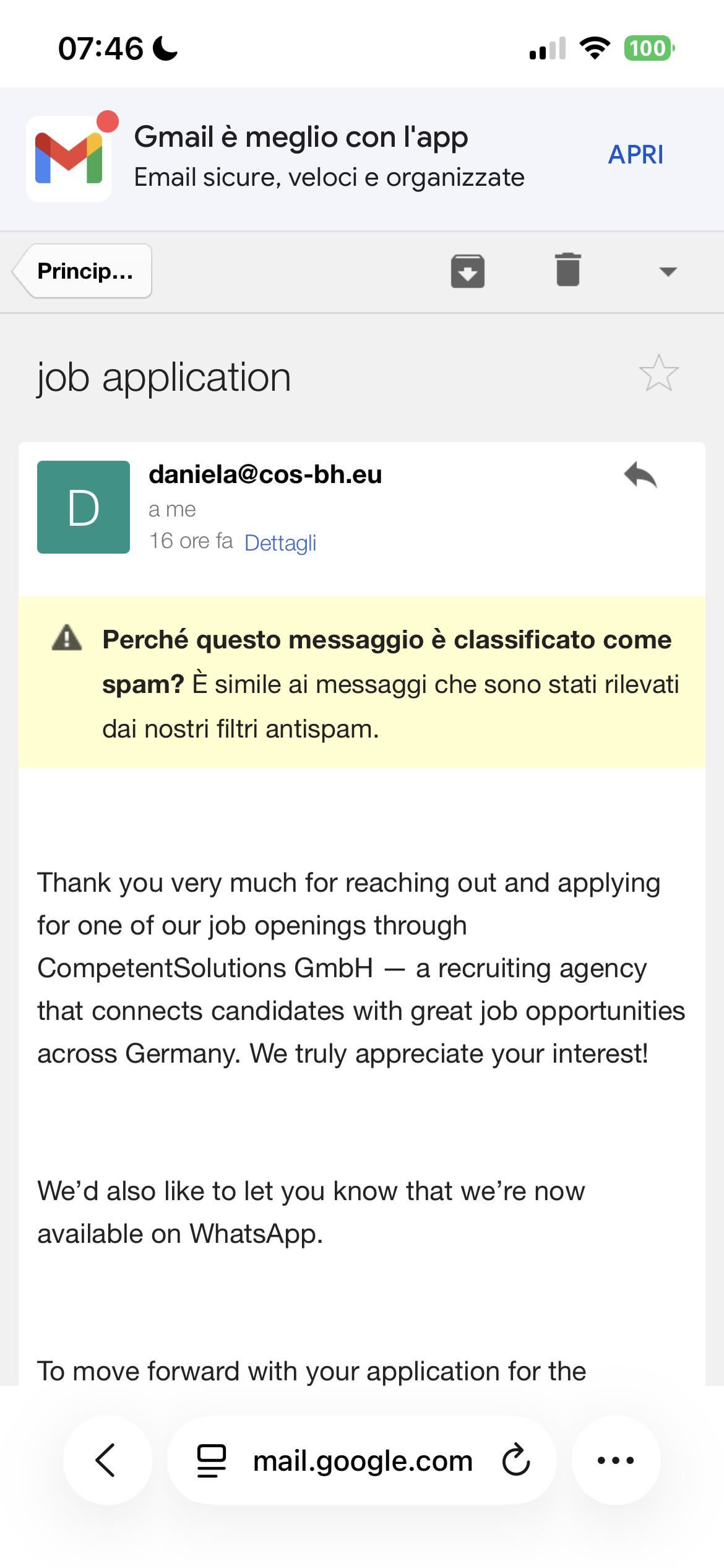 E lui mi ha contattato sulla mia email dicendomi di contattare su WhatsApp, non credo che un’azienda seria faccia questo tipo di colloquio, è comune questo? E qualcuno conosce questa azienda?