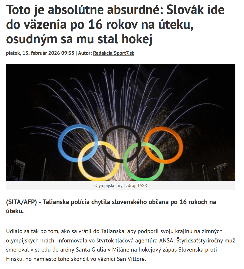 Lower-Jeweler5717 on 13/02/2026 11:21 Co je na tom absurdne? Ze bol na uteku, ze ho konecne chytili, ze to je kvoli hokeju? Praveze konecnie, nie?