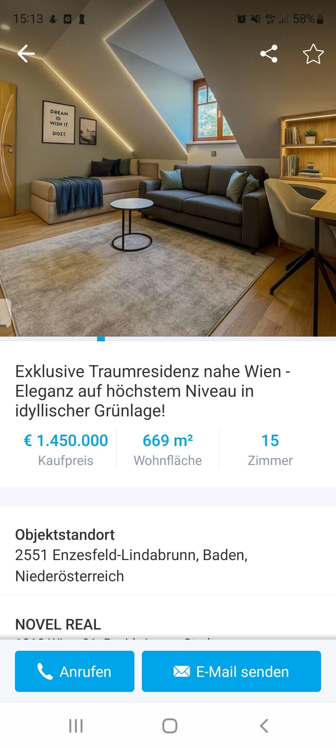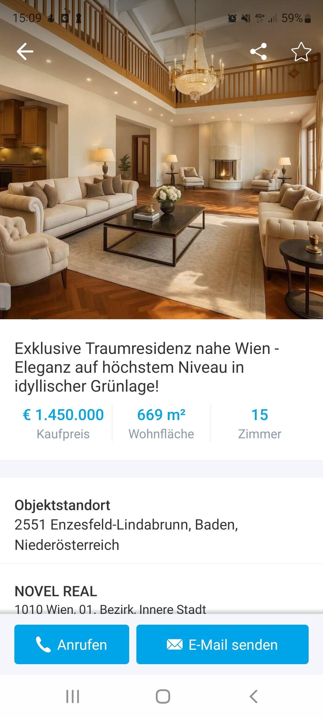 [Hier die Anzeige](https://www.willhaben.at/iad/immobilien/d/haus-kaufen/niederoesterreich/baden/exklusive-traumresidenz-nahe-wien-eleganz-auf-hoechstem-niveau-in-idyllischer-gruenlage-1049475380) disclaimer das es sich um beispielbilder oder optimierte Bilder handelt ist drin sowie 40 andere Bilder.
