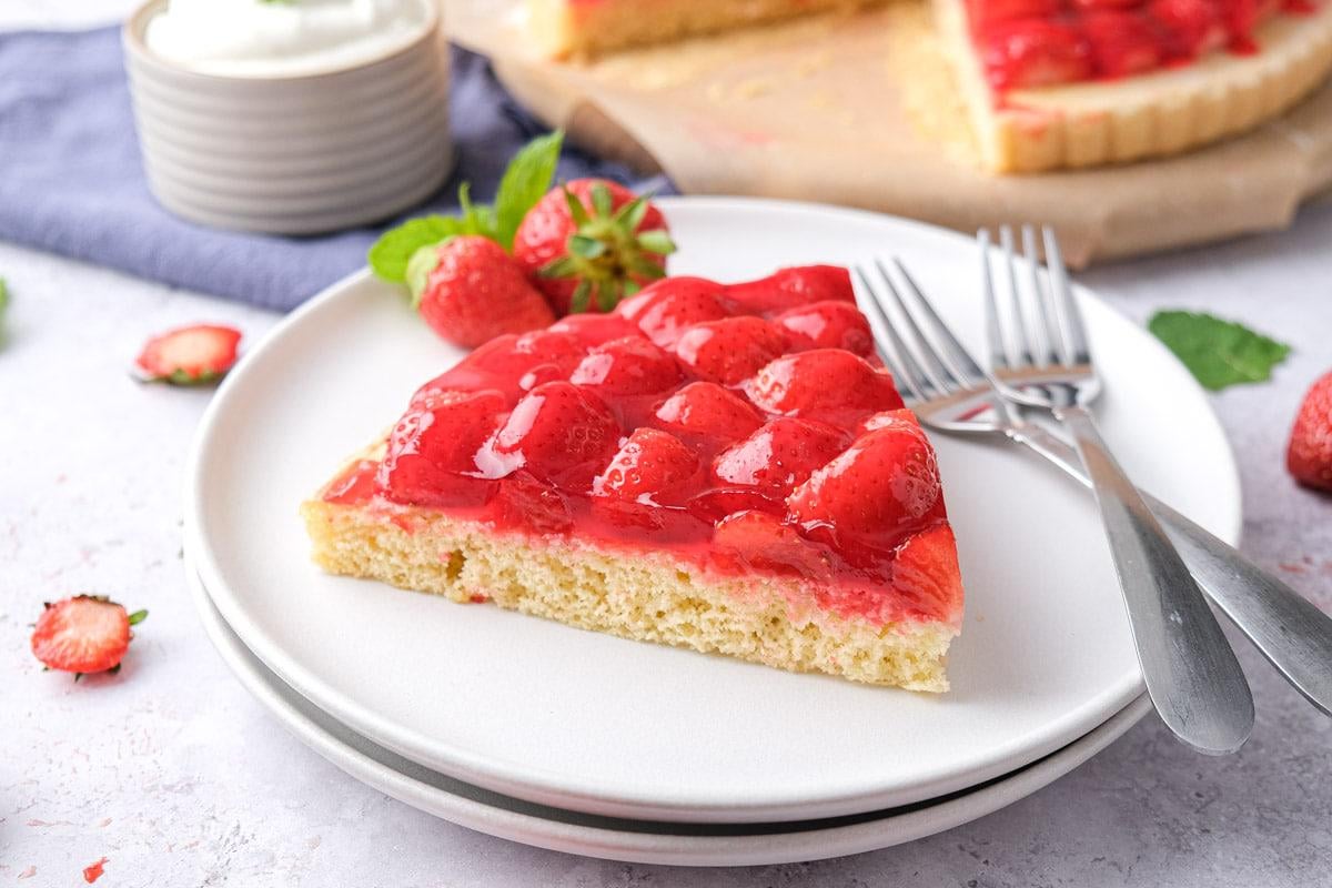 My mom makes this cake all the time. I don’t have her recipe but I know that hers is not spongy but more with a crisp base (which gets softer and soggy from the strawberry after a day or so) and I really like that and would dislike a spongy version. I would therefore probably disagree on the eggs in the recipe you shared.