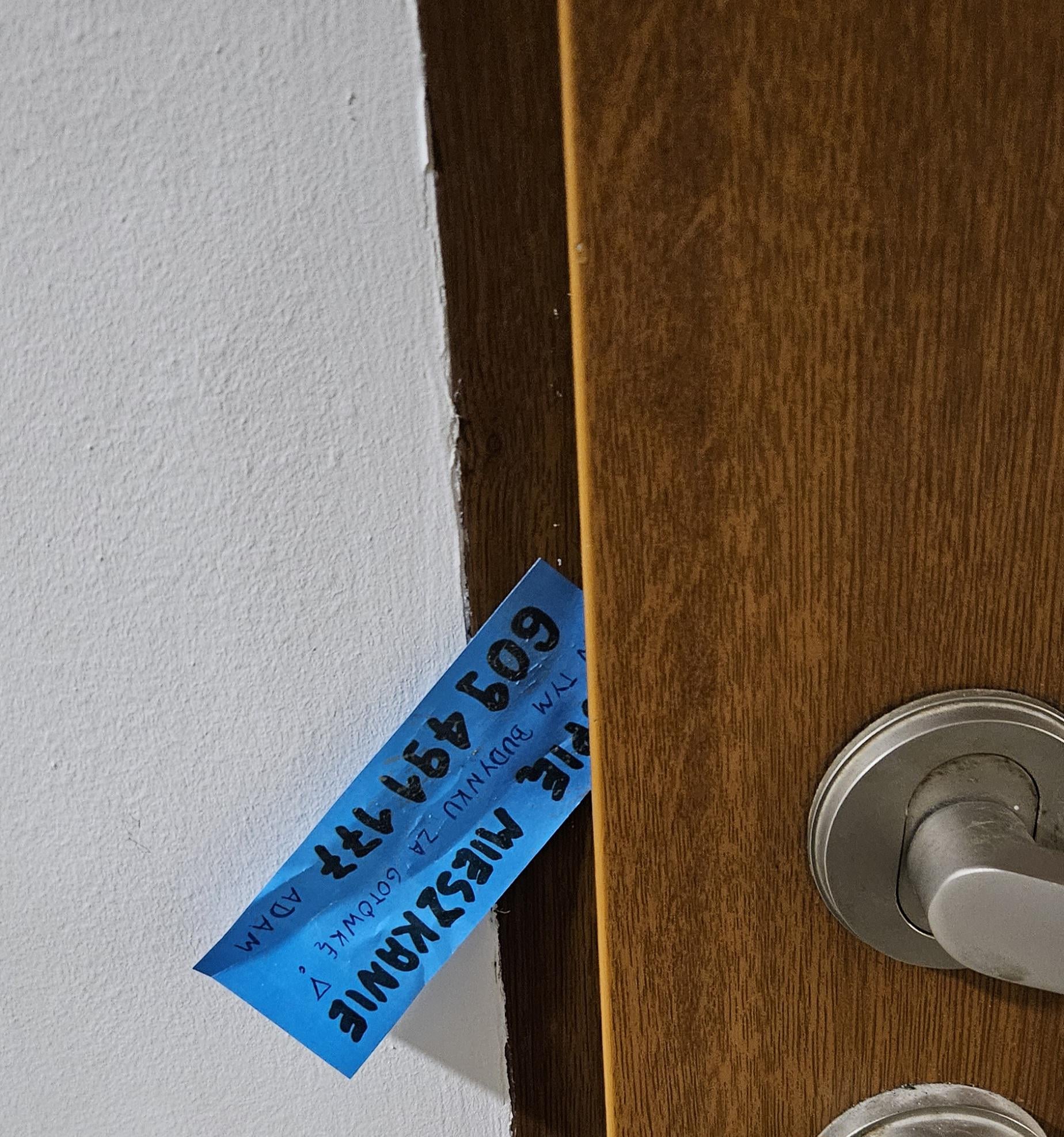 Nie dodałem opisu: jebani chyba zauważyli że kartki rysowane przez dzieci w skrzynkach nie działają, więc zaczęli wciskać w drzwi